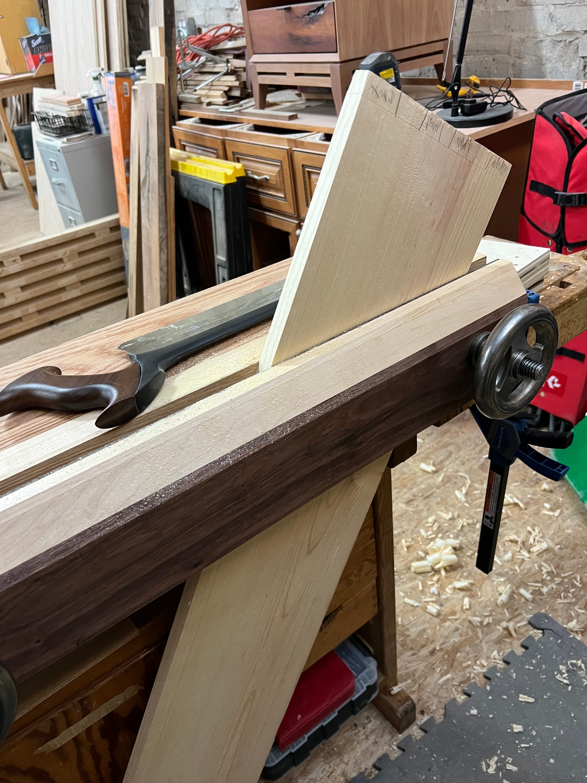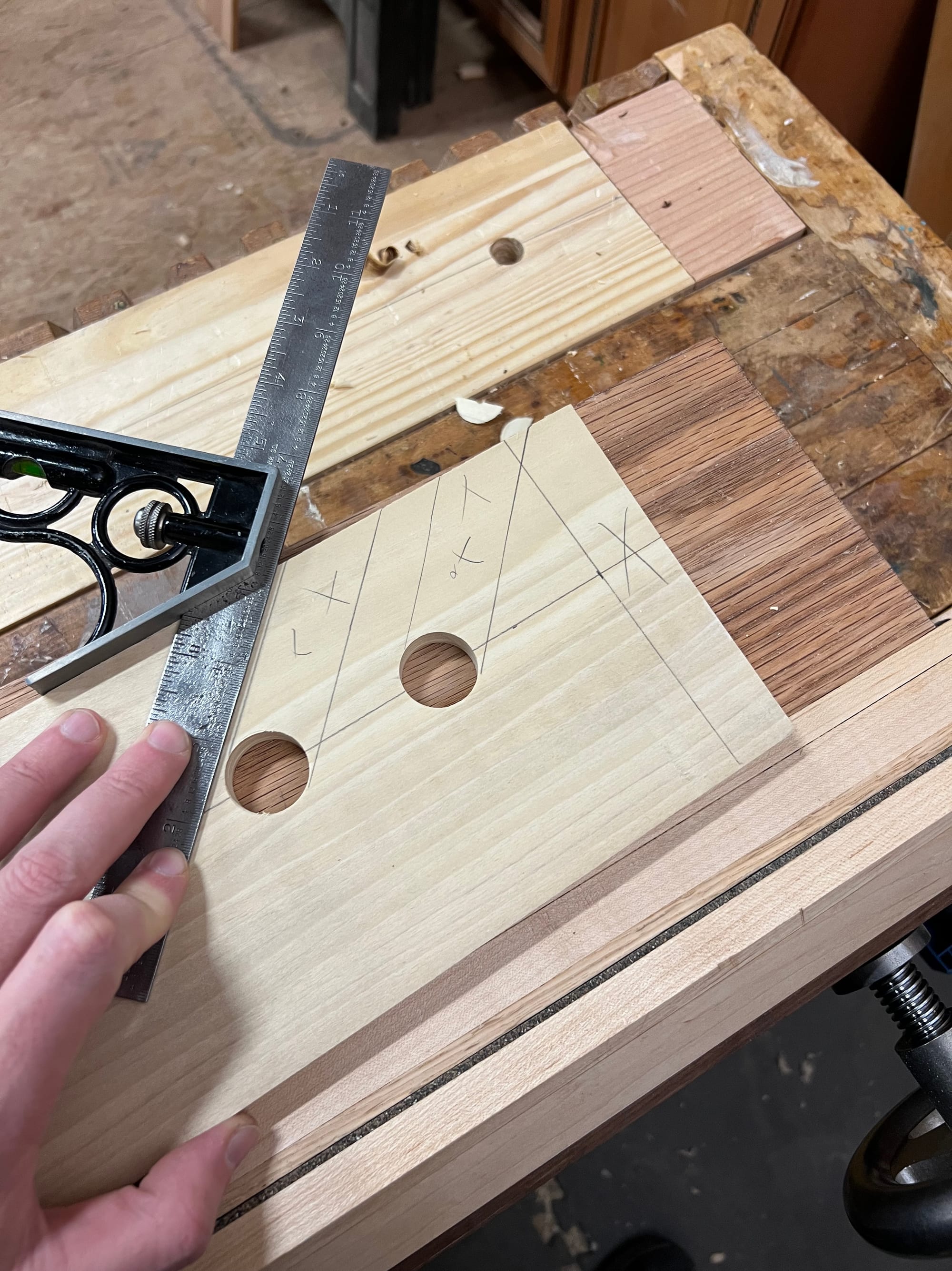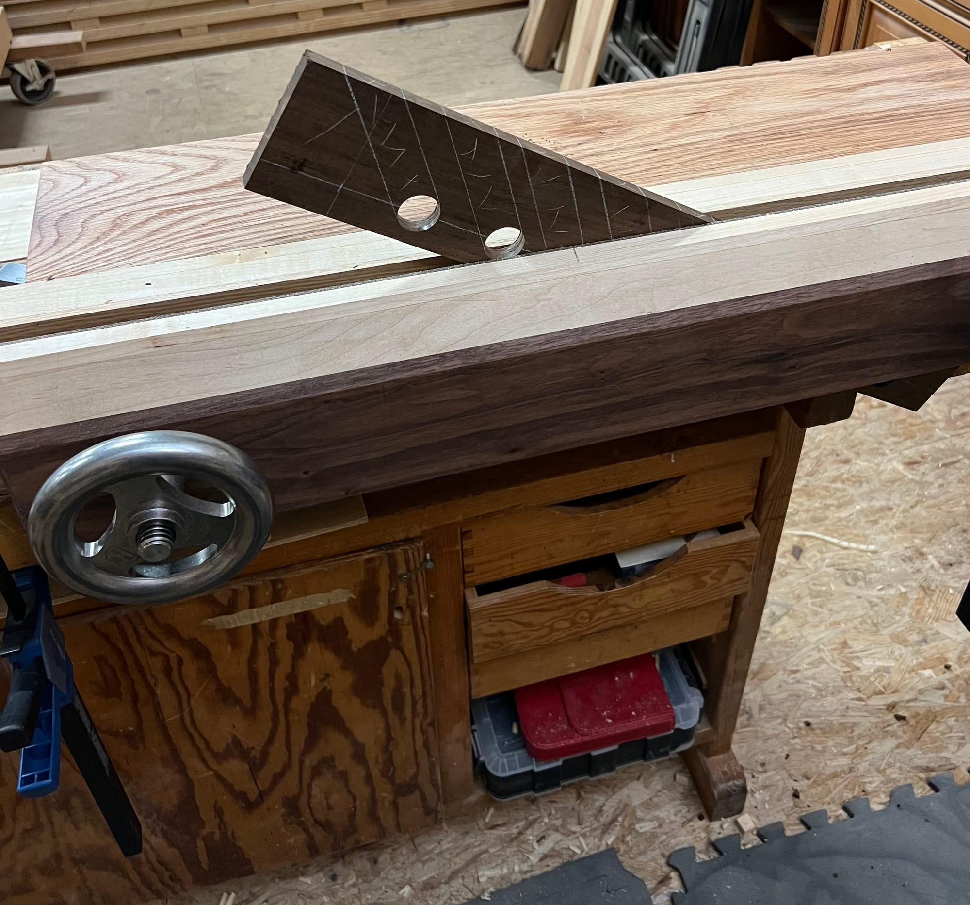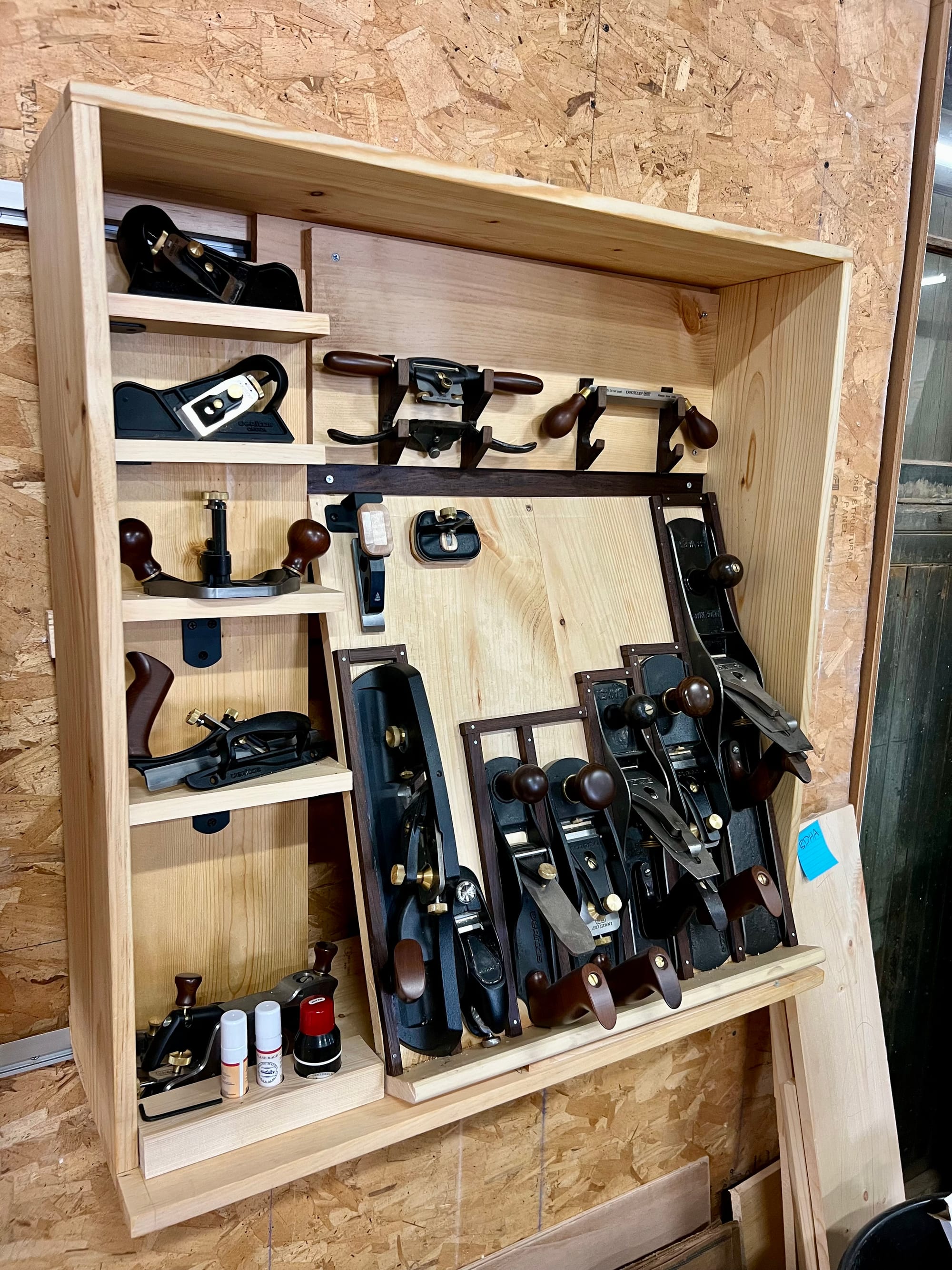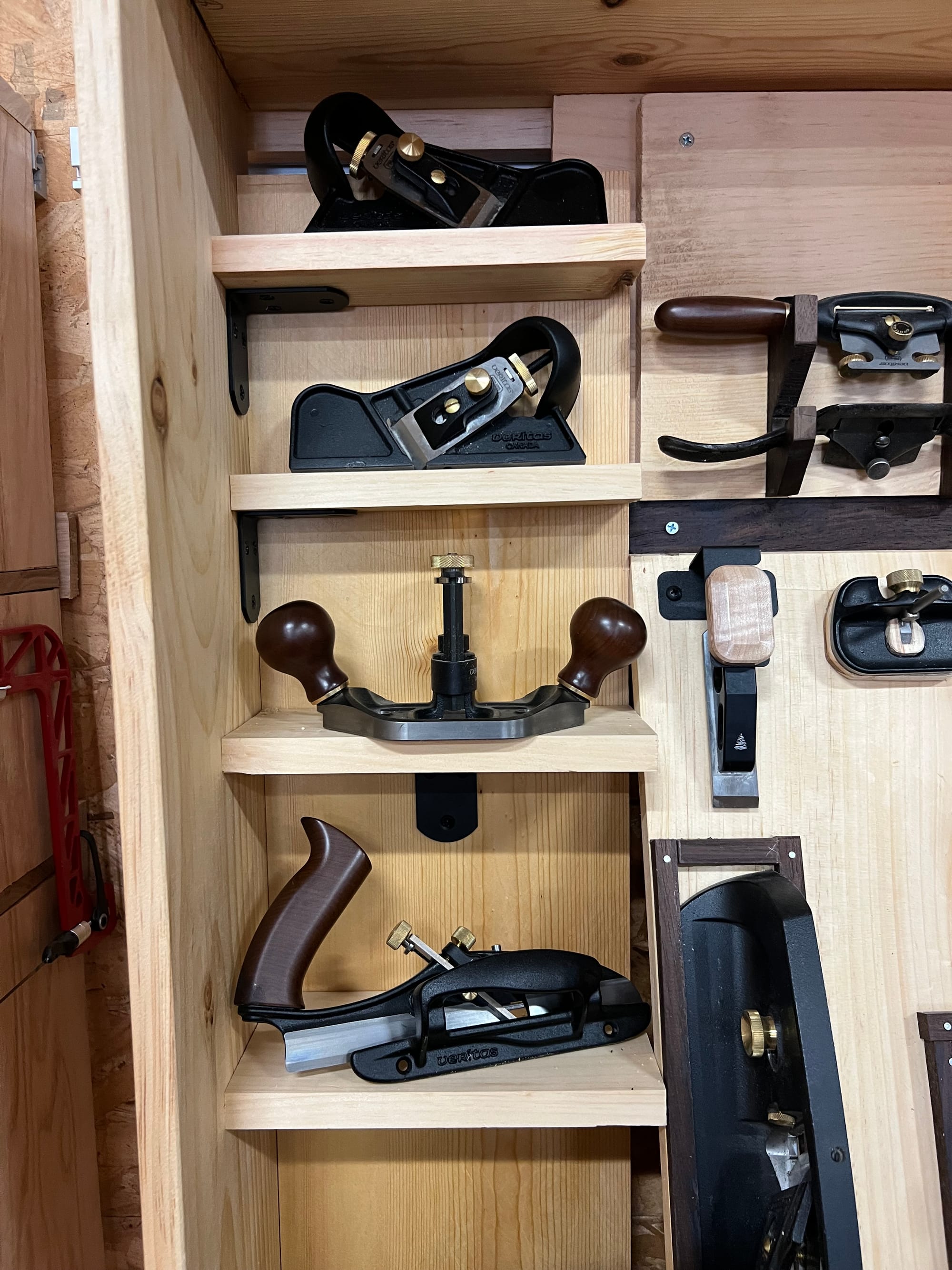 I also wanted to mount my spokeshaves and draw knife, so I bashed some temp holders together in a few minutes just to see what it might look like.