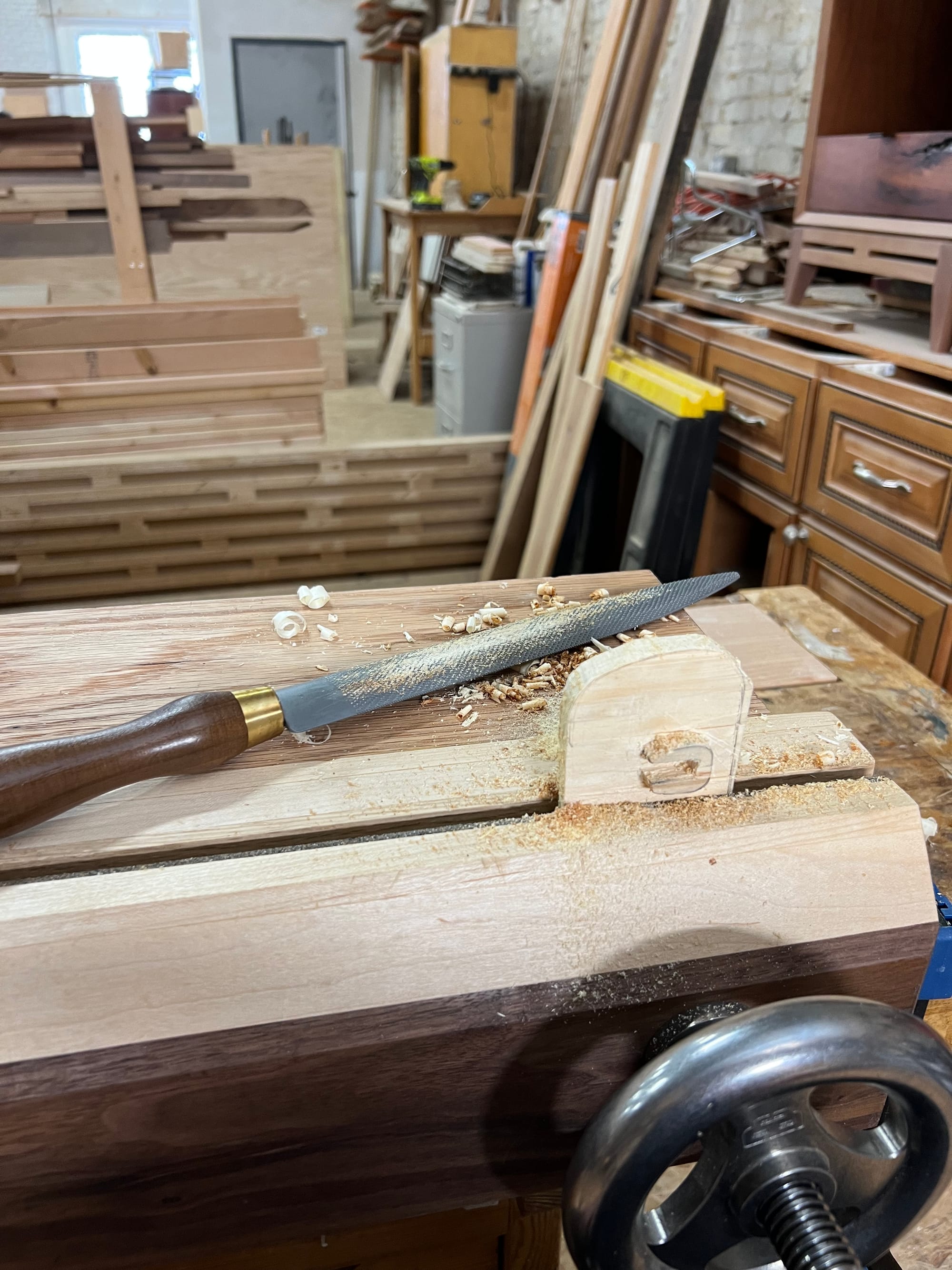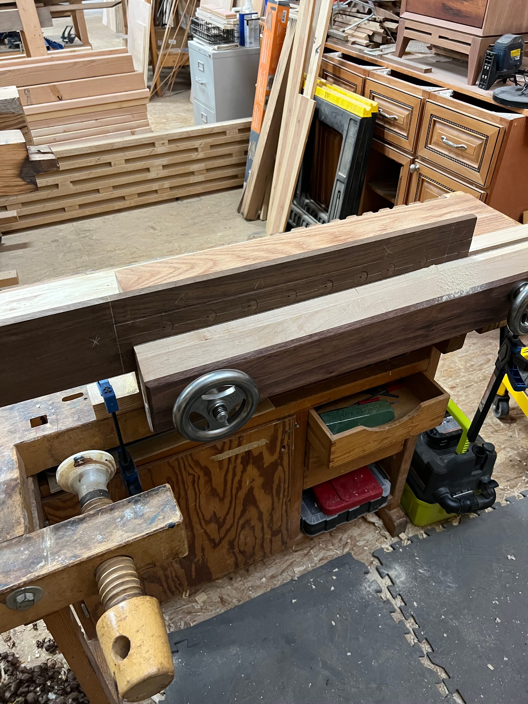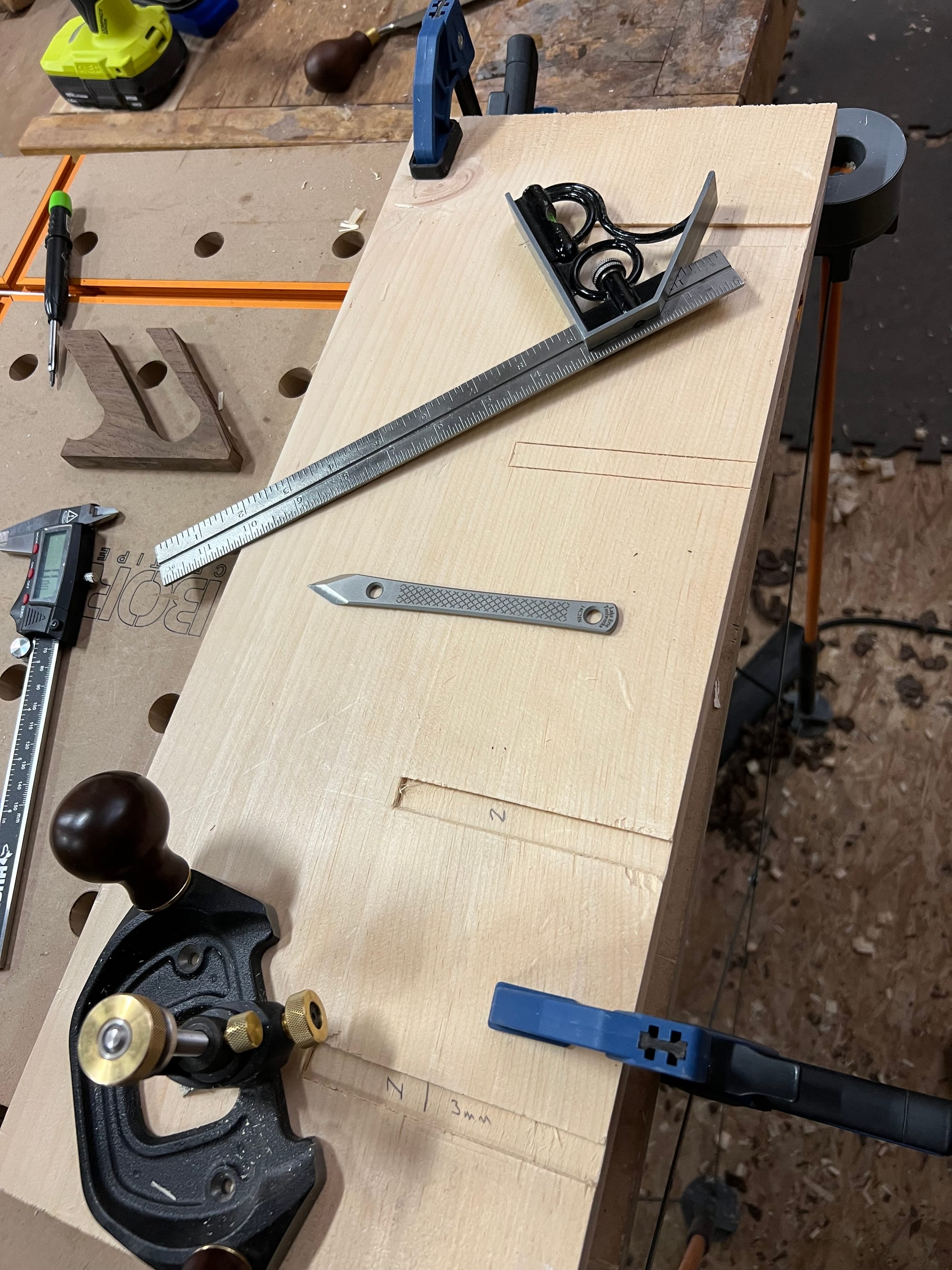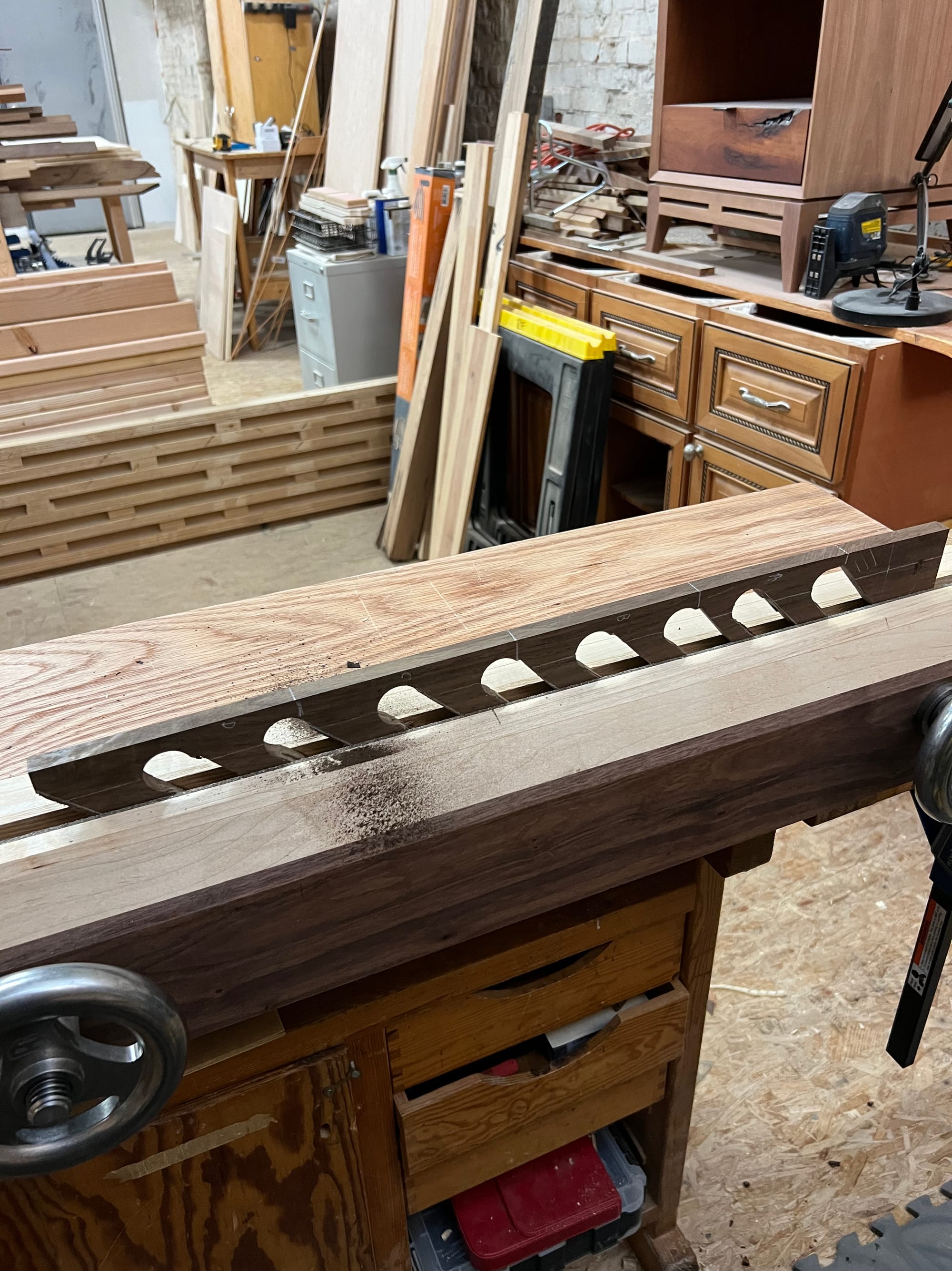 I also wanted to mount my spokeshaves and draw knife, so I bashed some temp holders together in a few minutes just to see what it might look like.
