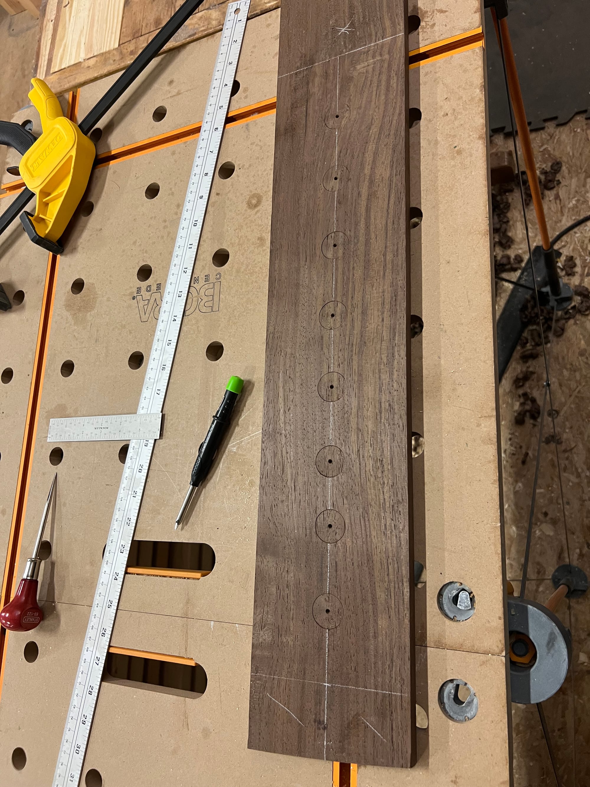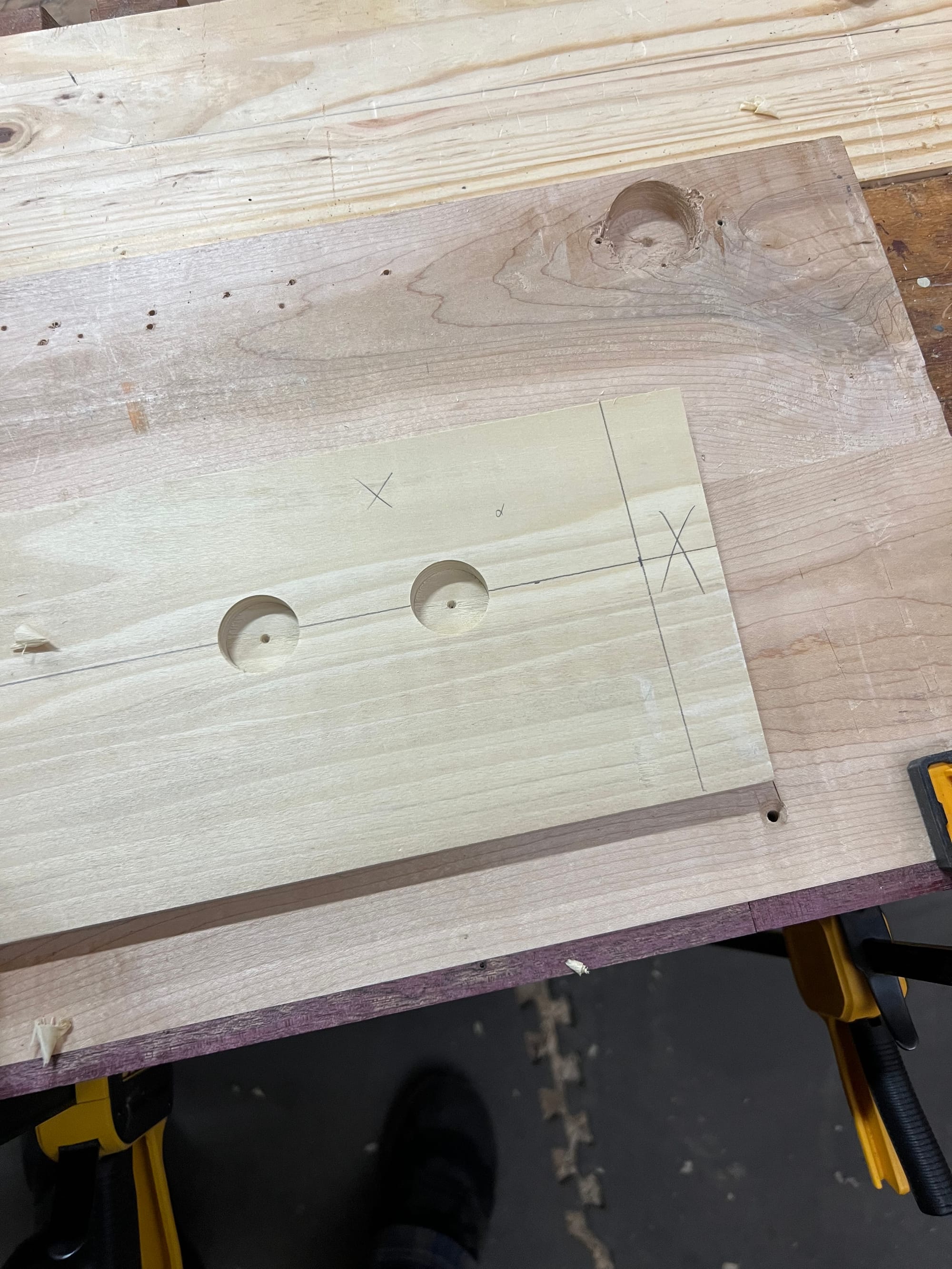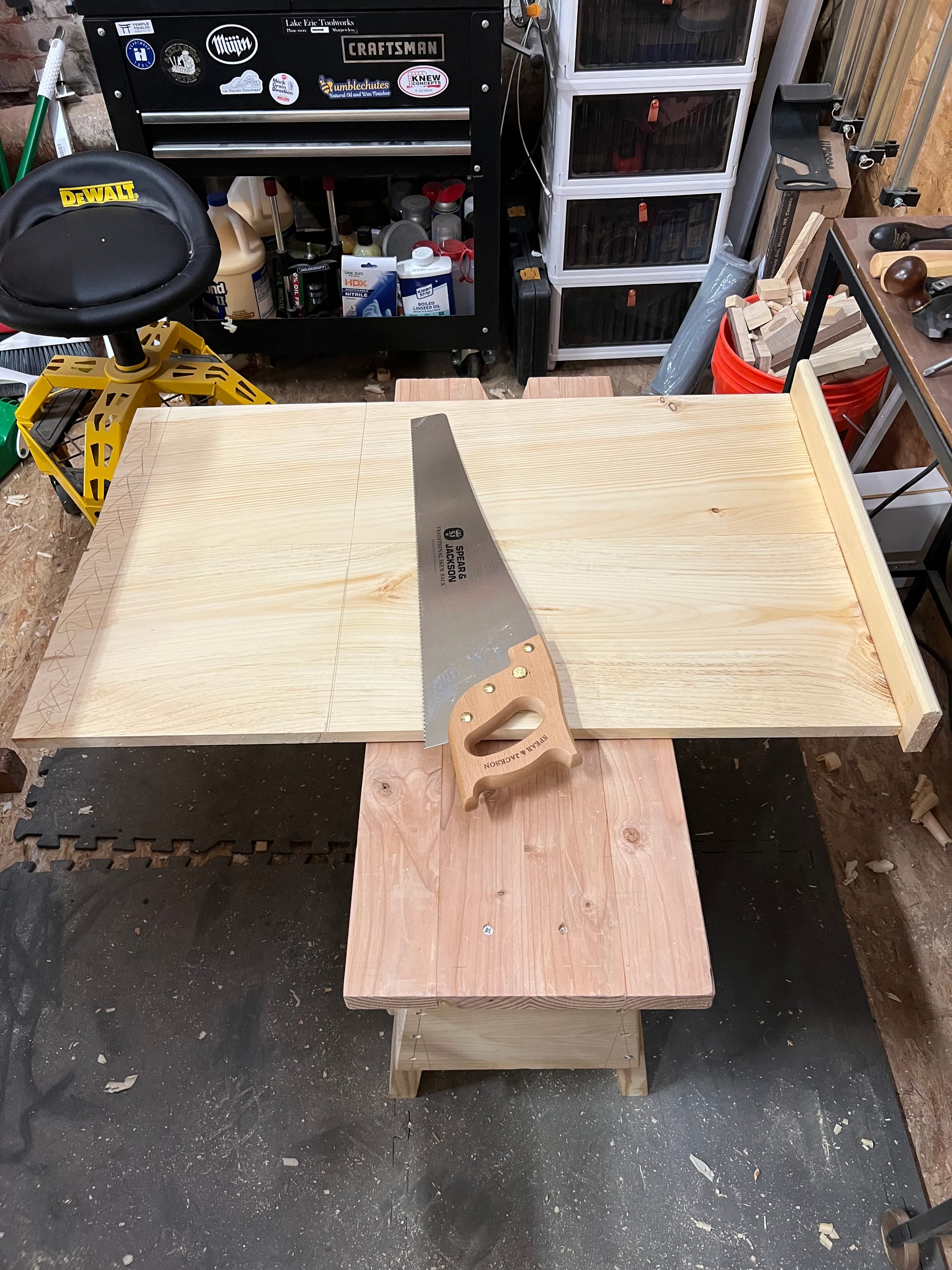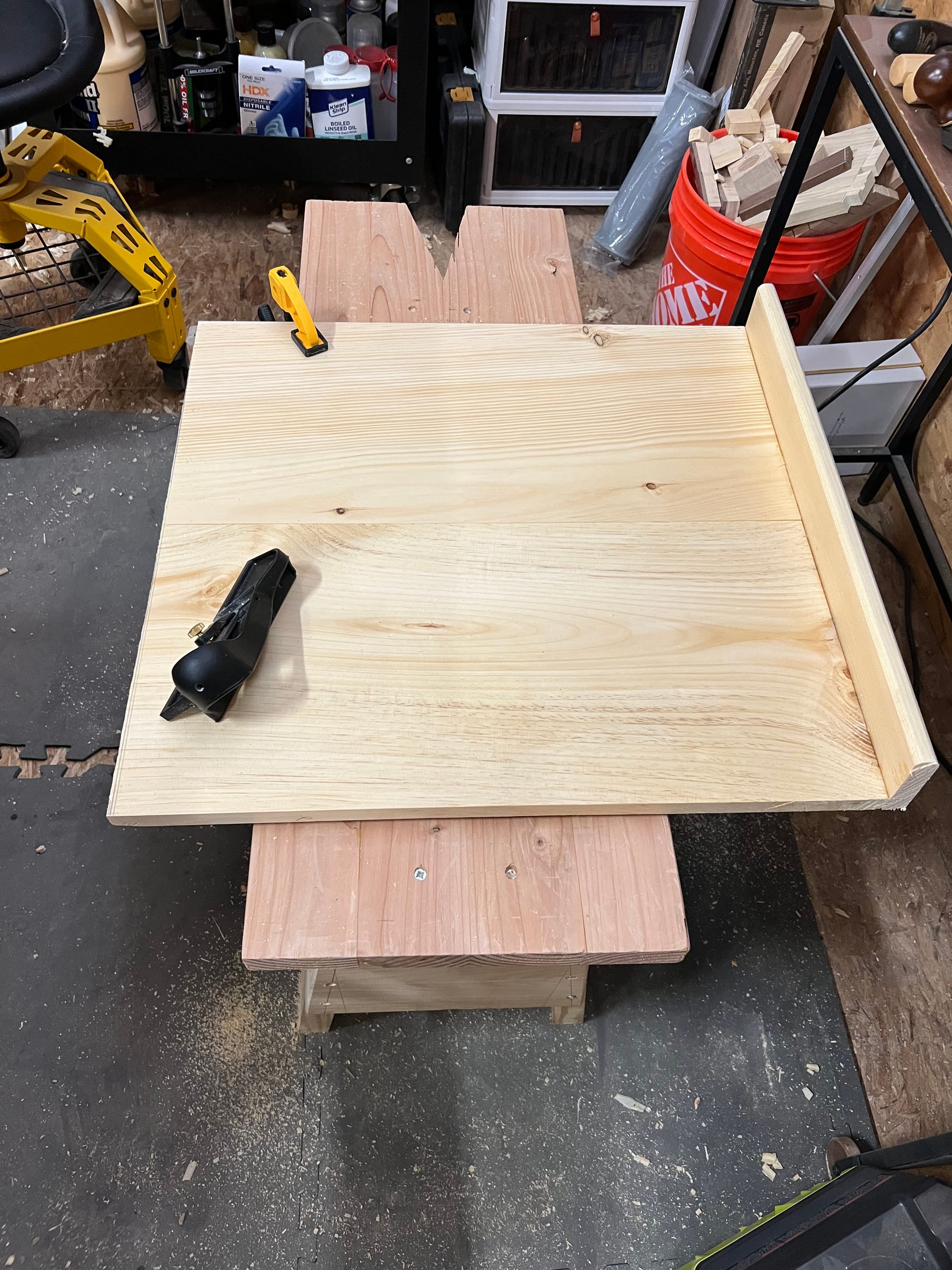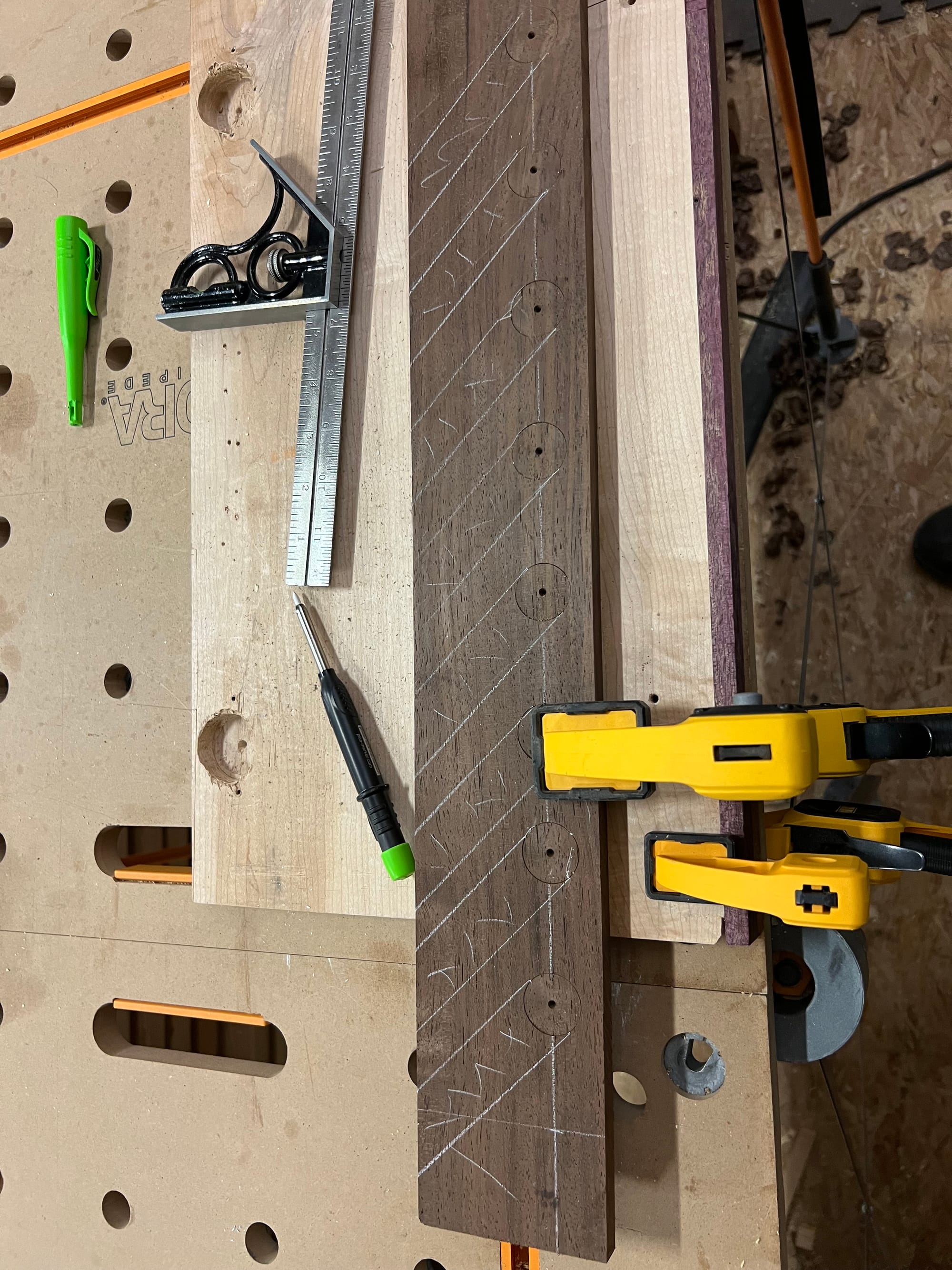 I also wanted to mount my spokeshaves and draw knife, so I bashed some temp holders together in a few minutes just to see what it might look like.