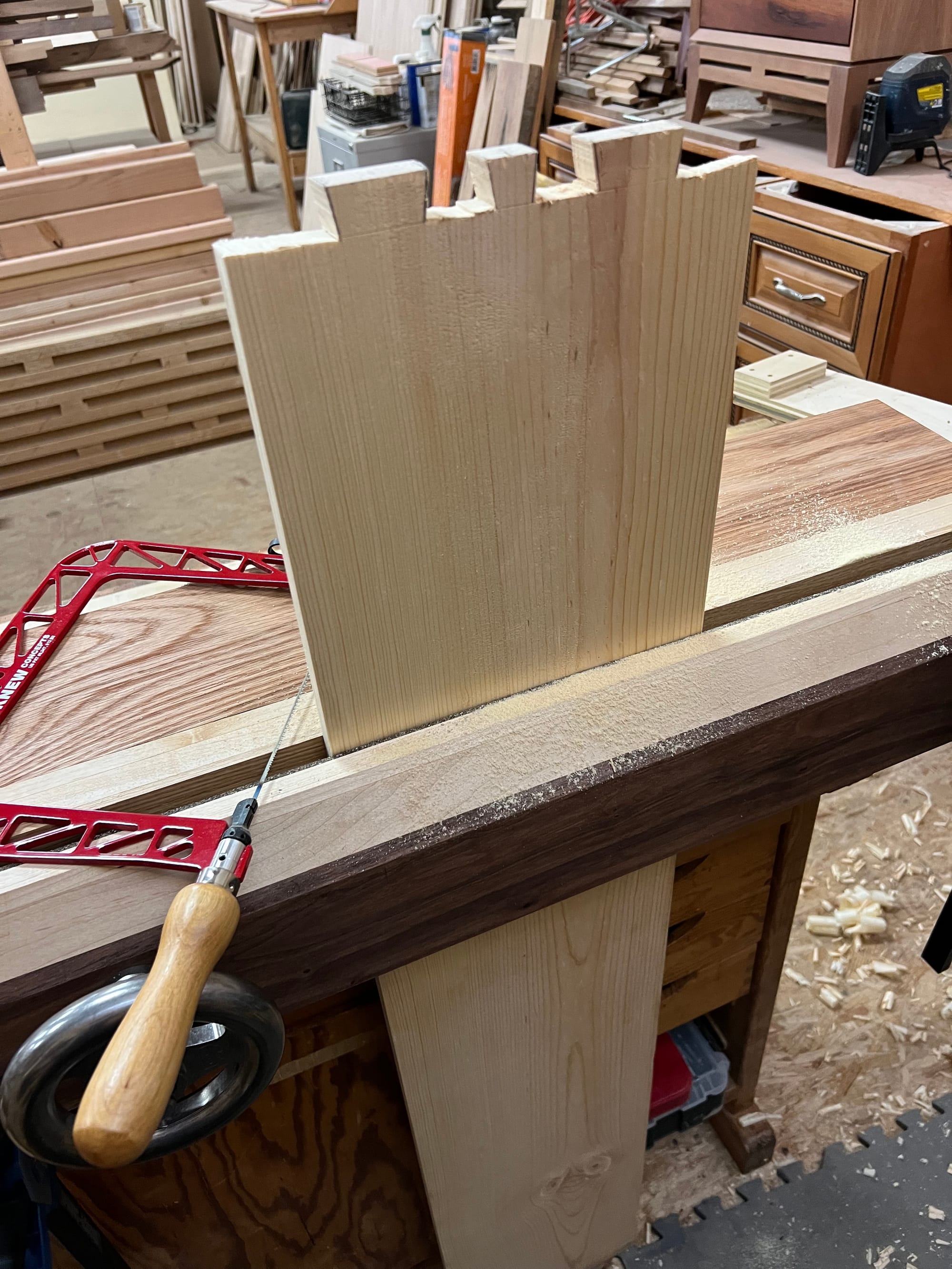 My initial attempt involved some really terrible dovetails, then some less complicated joints, then finally giving up and starting over.