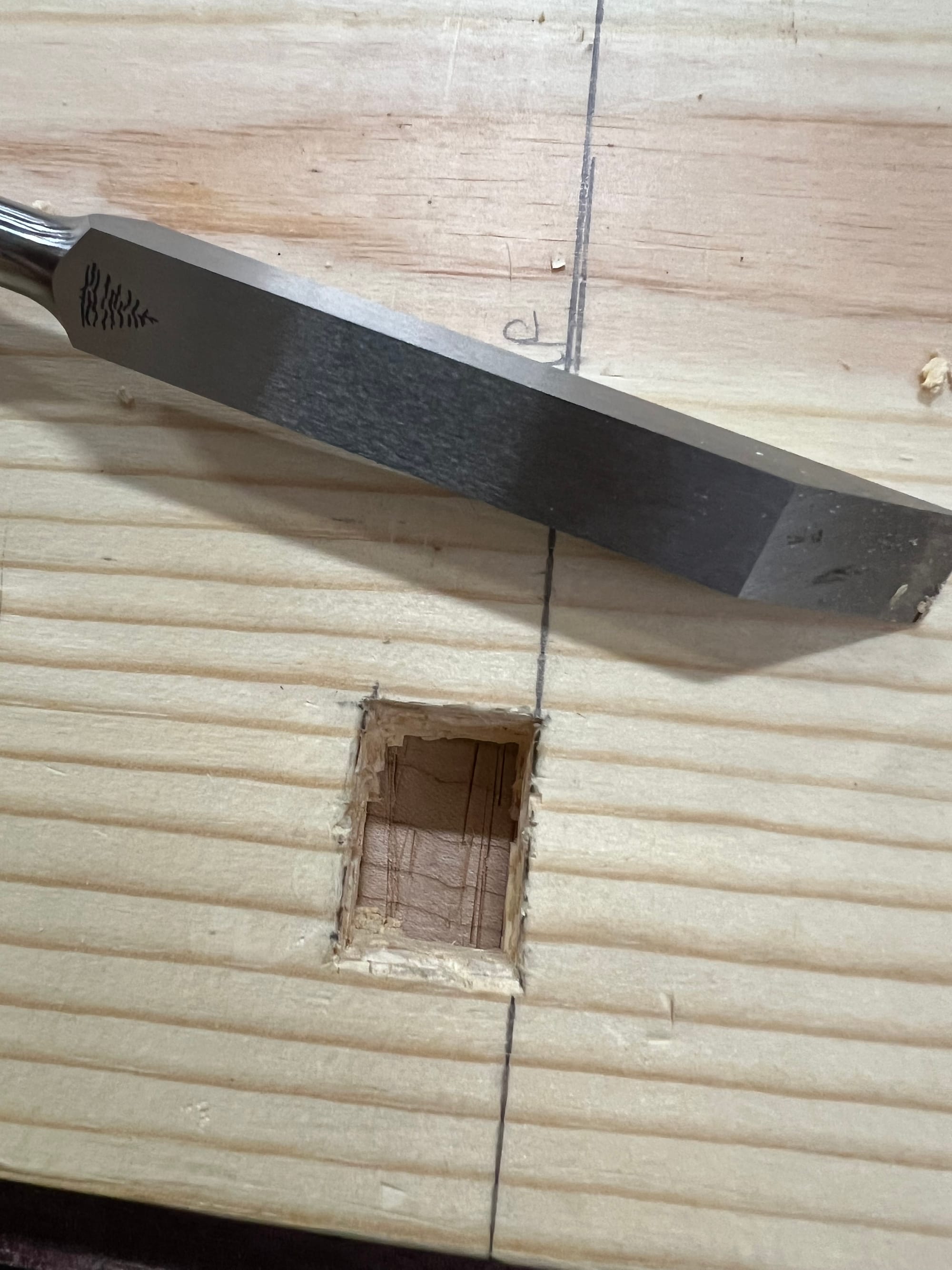 This was my first attempt at joints like this, or through-mortises using a mortising chisel. It definitely showed.