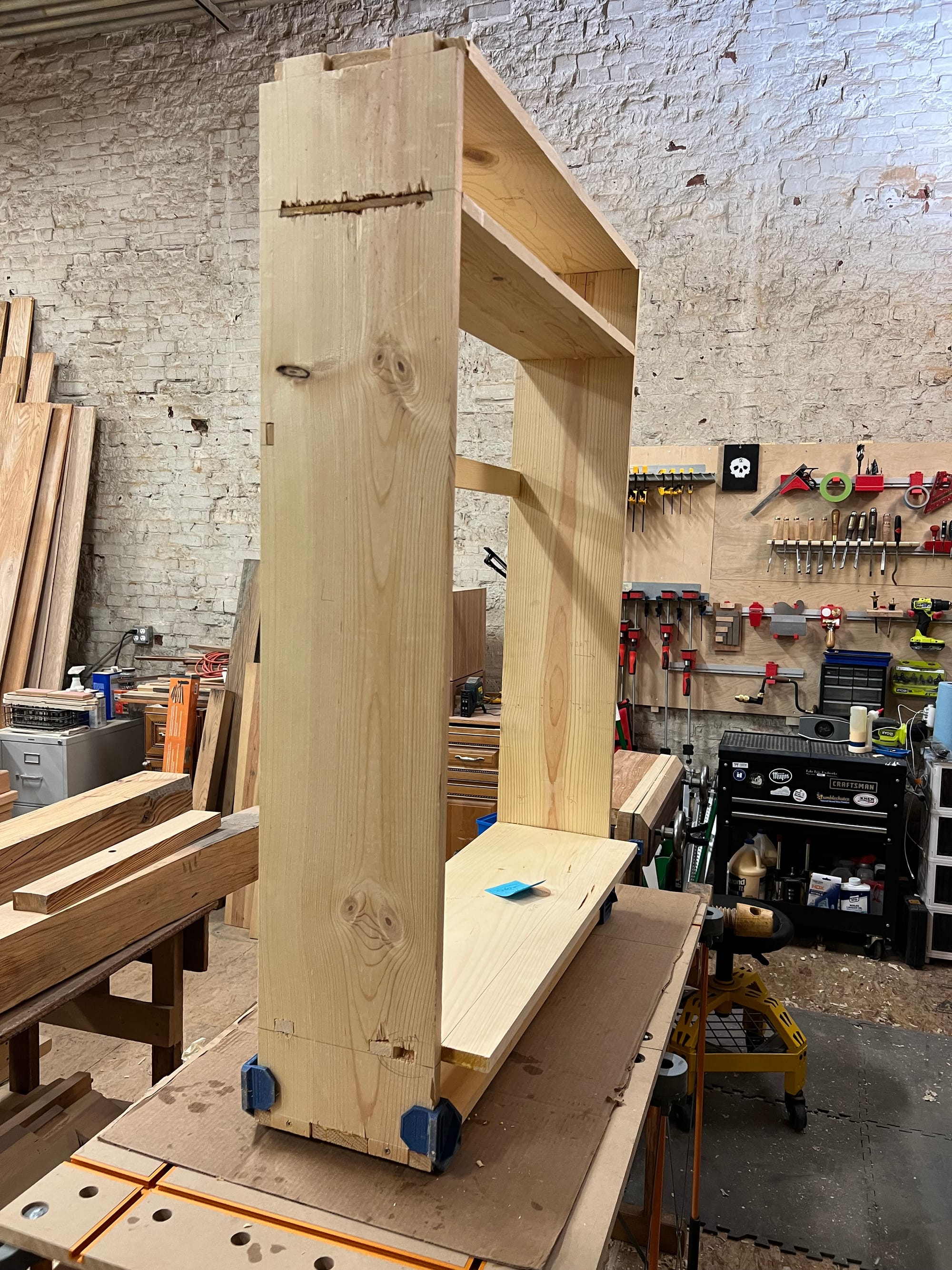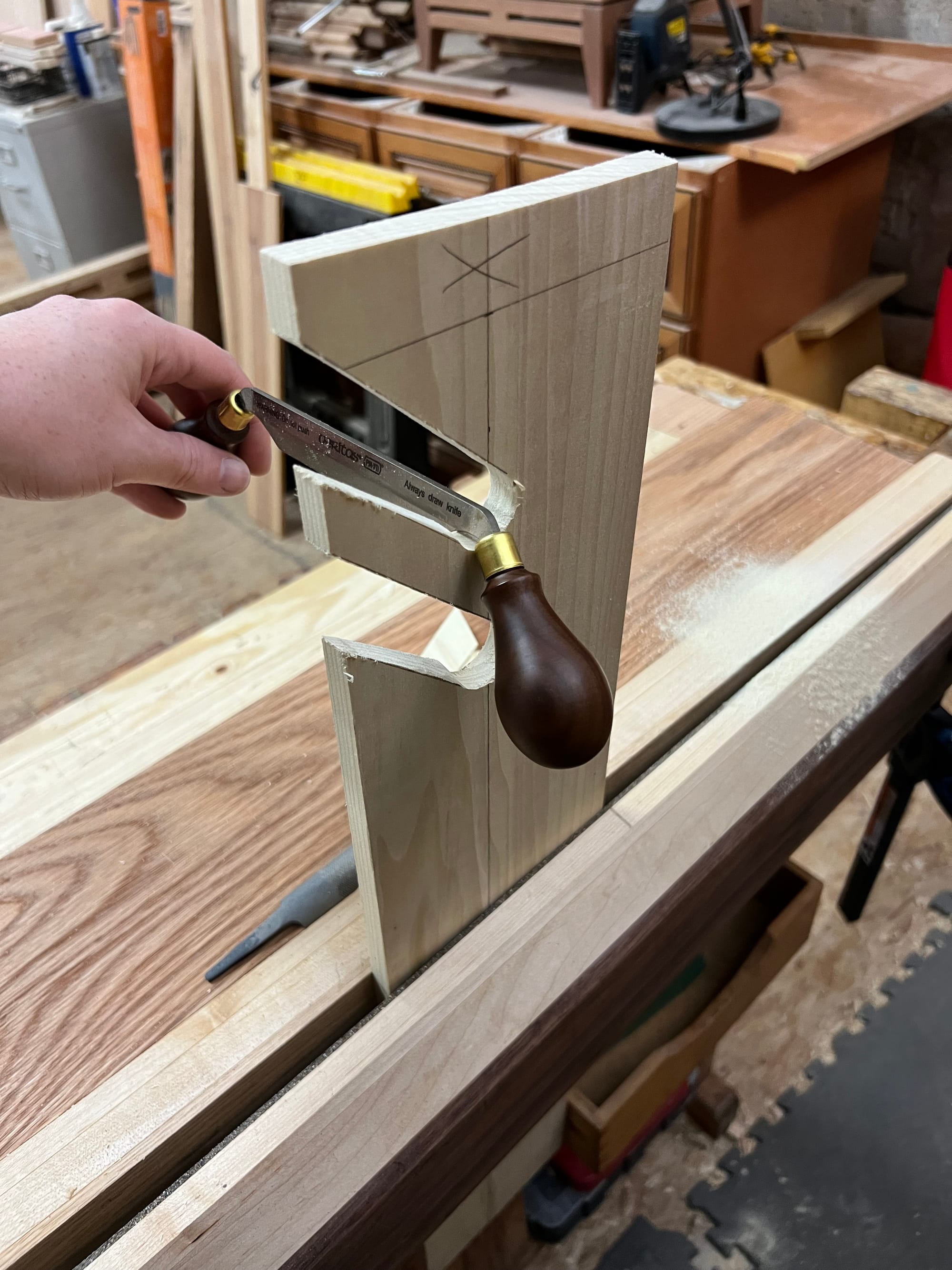 The next attempt went better. I lost quite a bit of space inside the carcass, but that meant the pieces were easier to work with. I had at least made a handful of mortises so that went a bit more smoothly as well.